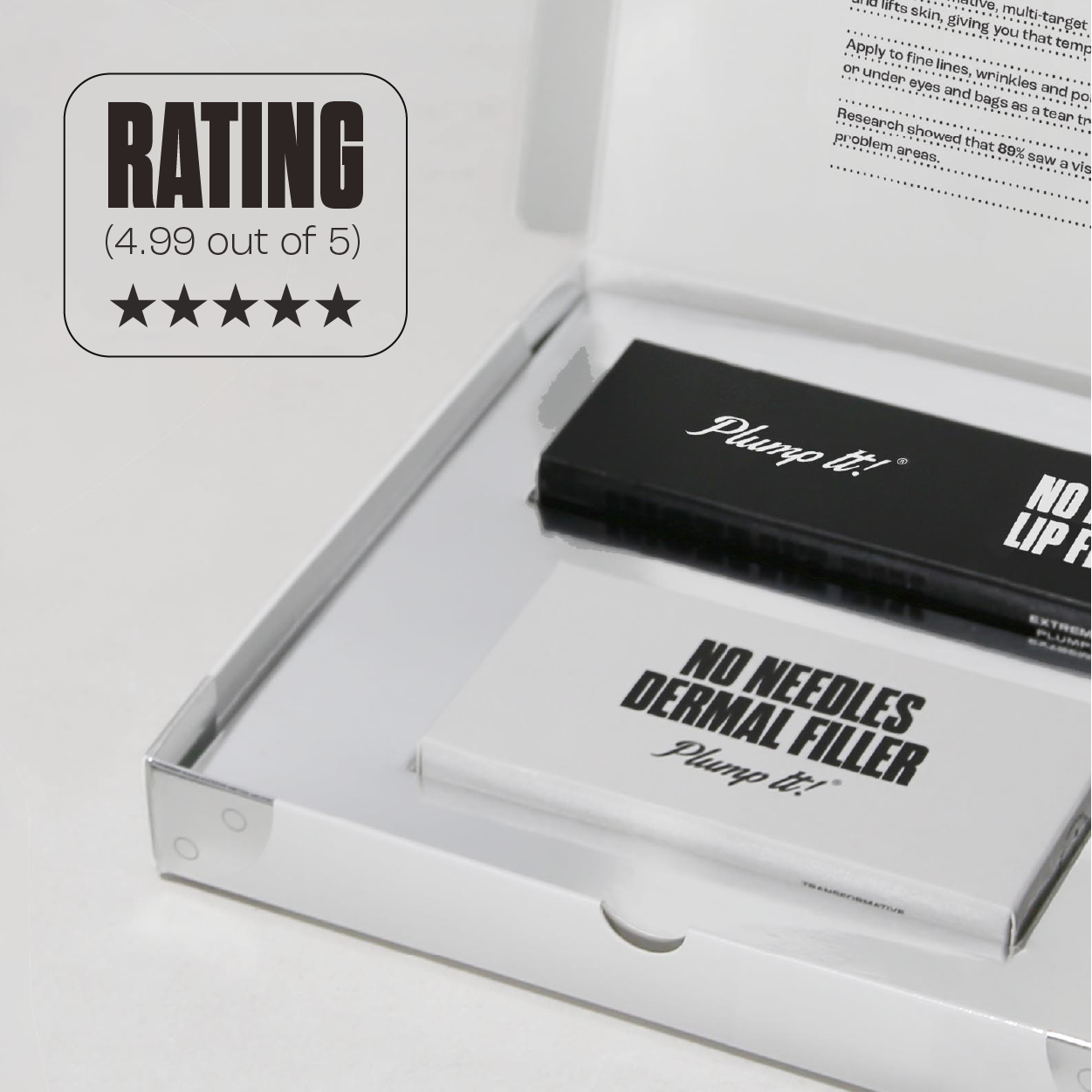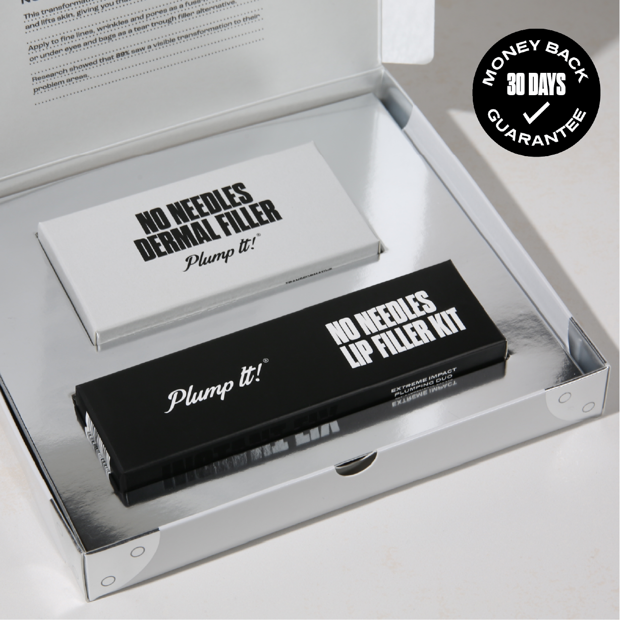 Includes: 1x No Needles Lip Filler Kit (which includes Volumising Lip Plumper and Hyaluronic Lip Plumper), 5x pods No Needles Dermal Filler Starter Kit