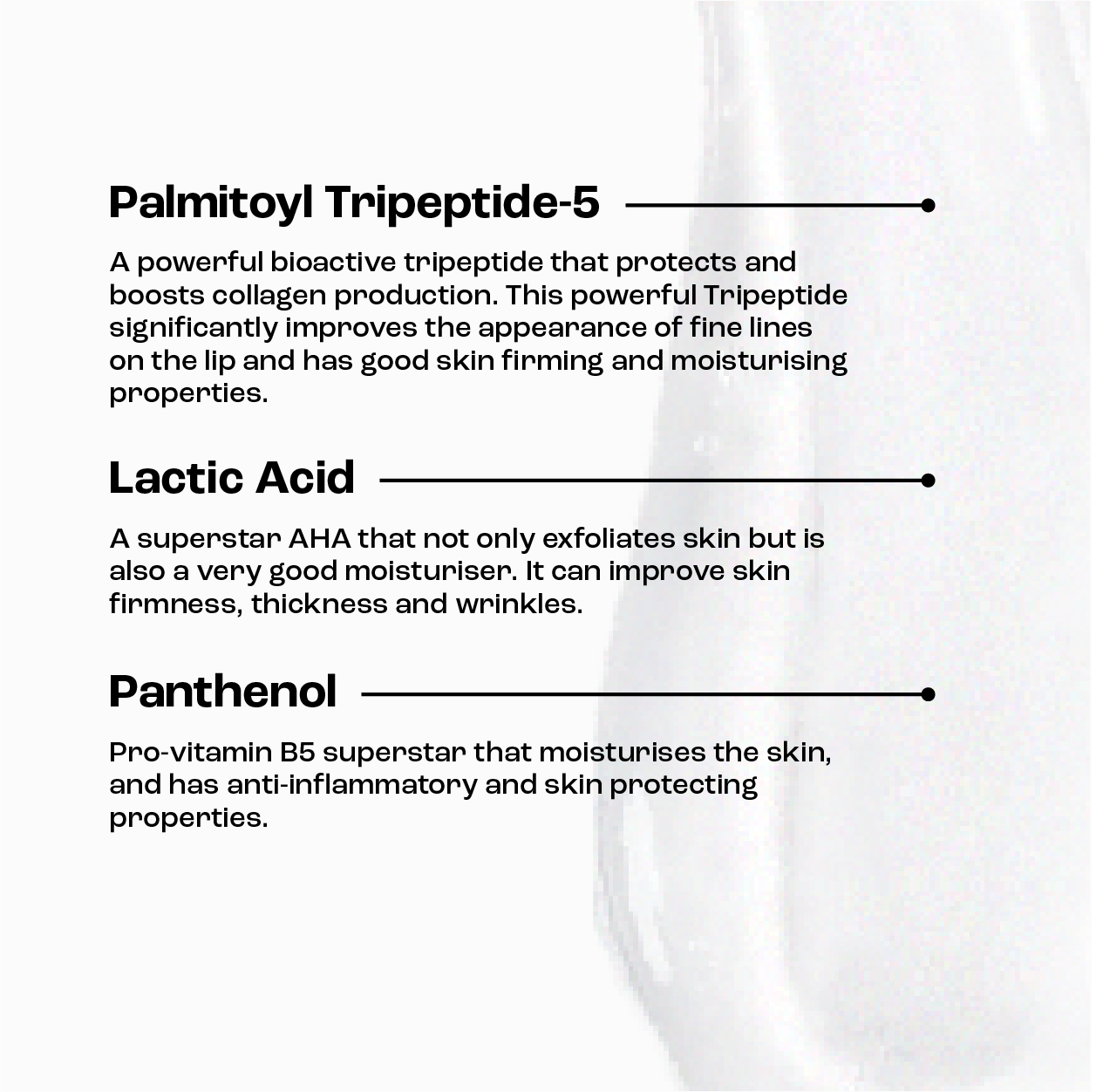 - Topical collagen lip products are often ineffective as collagen molecules are too big to penetrate the skin and have an effect. However this effective tripeptide encourages your own lips to increase collagen production from within, whilst protecting existing supplies.