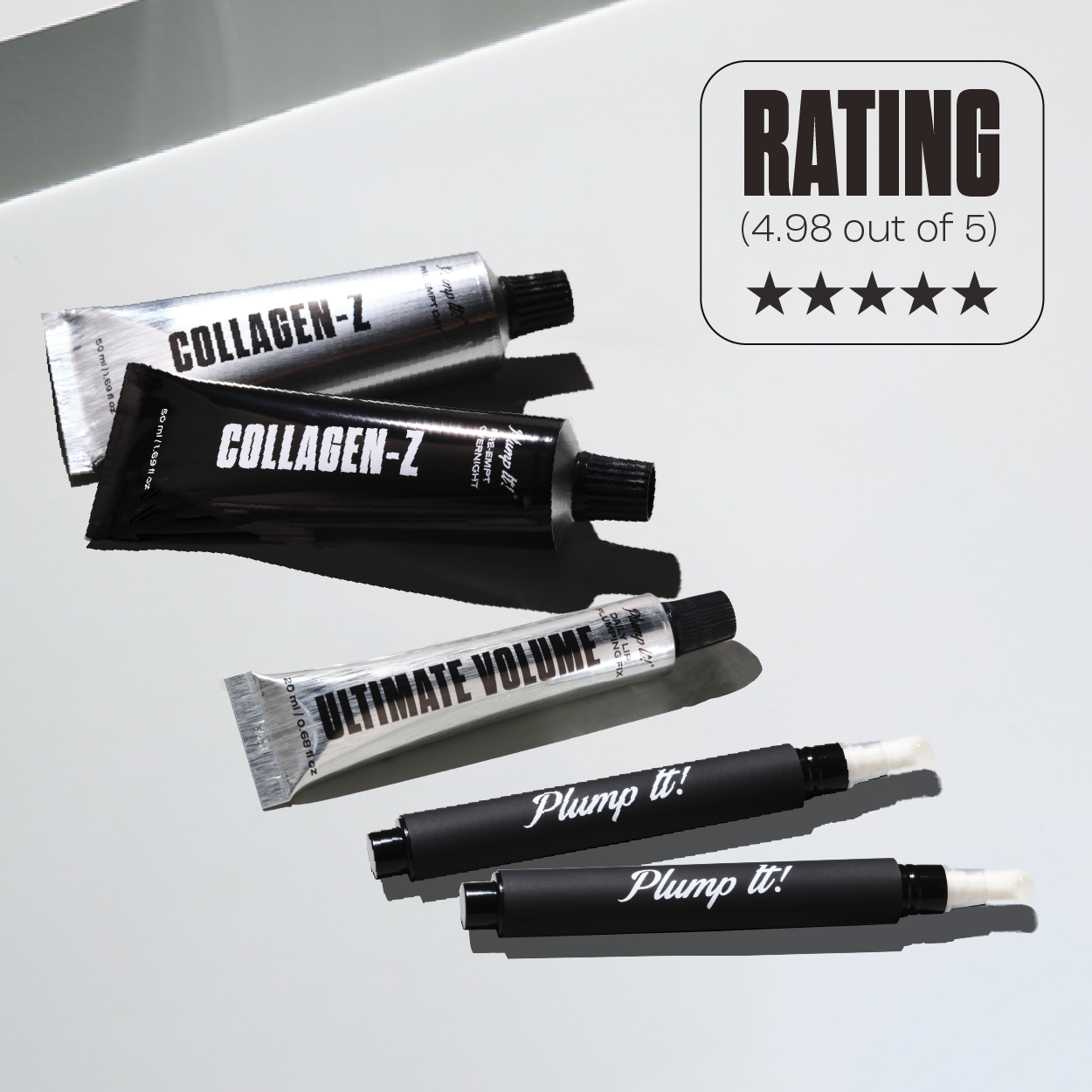 Includes: 2x Hyaluronic Lip Plumpers, 1x Daily Lip Plumping Fix, 1x Pre-Empt Day, 1x Pre-Empt Overnight