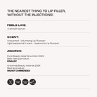 - Our Volumising Lip Plumper instantly increases the size and profile of your lips.